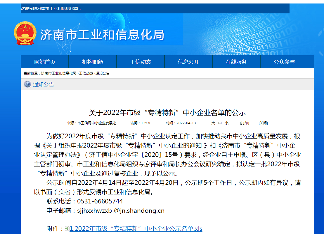 4月20日,山東奧翔電力工程設計咨詢有限公司通過濟南市工業和信息化局2022年市級“專精特新”中小企業公示期,成功入選2022年市級“專精特新”中小企業。水發奧翔通過“專精特新”中小企業的認定,標志著公司在創新技術水平、經營管理能力及品牌影響力等方面獲得了社會認可。這也是繼獲得國家級高新技術企業認證后,公司獲得的又一殊榮,正式實現“雙認證”。